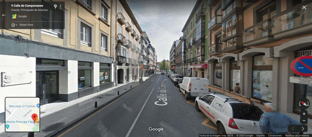 En segundo lugar visitaremos la calle Campomanes, conocido en la novela como la Colonia, una calle que, con su catalejo, observaba el Magistral.
