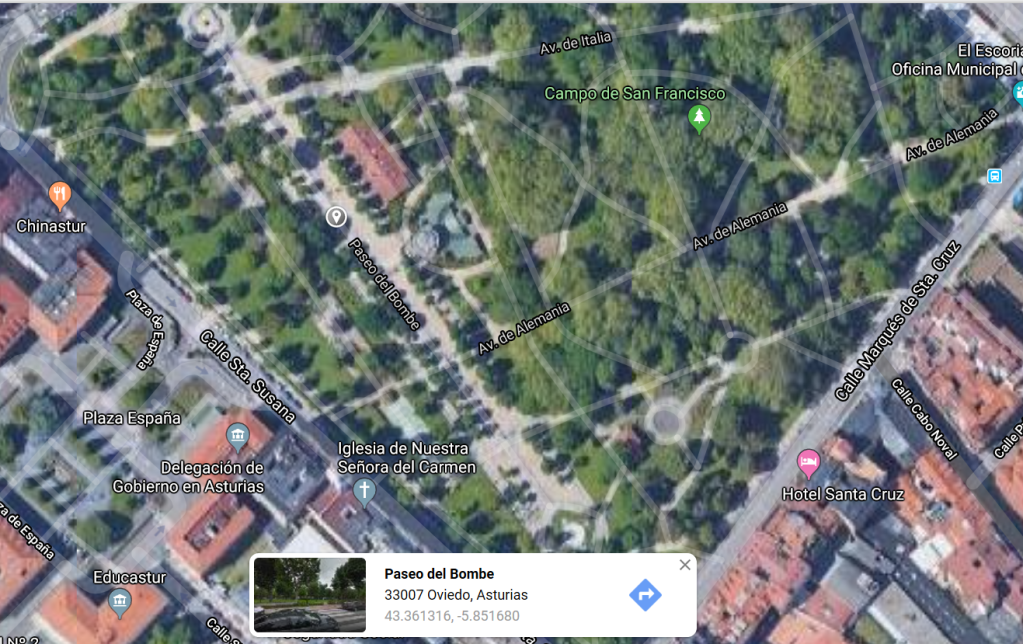 A continuación pasearemos, como los vetustenses de la obra, por el Paseo Grande y el Espolón, mejor conocidos en Oviedo como el Paseo de los Curas y el Bombé, que enseñaremos ahora en ese orden.